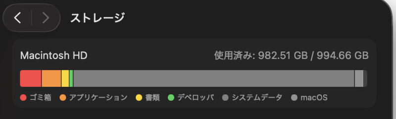 - Macの「ストレージ」表示で「システムデータ」が数百GB以上存在
